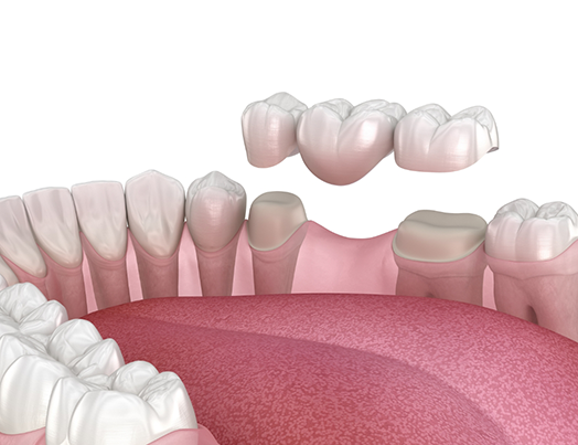 Dental bridges are a reliable and natural-looking way to replace one or more missing teeth in a row, restoring both function and appearance to your smile. A bridge is made up of one or more artificial teeth secured in place by crowns attached to the healthy teeth on either side of the gap. In some cases, they can also be secured with the help of dental implants. This restoration not only improves your ability to chew and speak but also helps maintain proper alignment by preventing neighboring teeth from shifting.